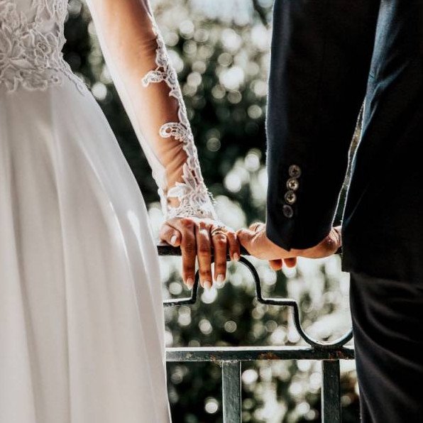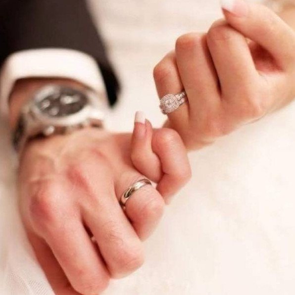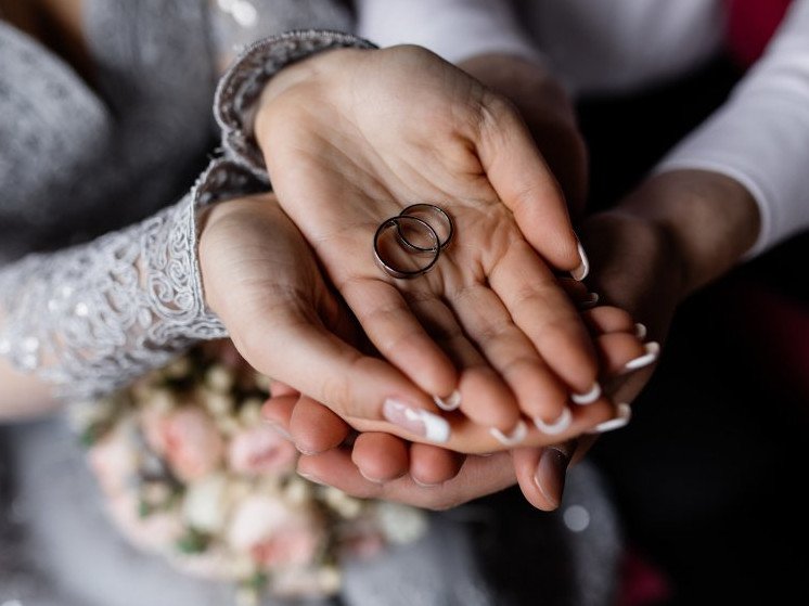 Красивые обручальные кольца на руках.