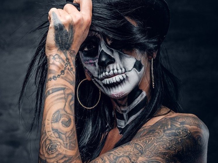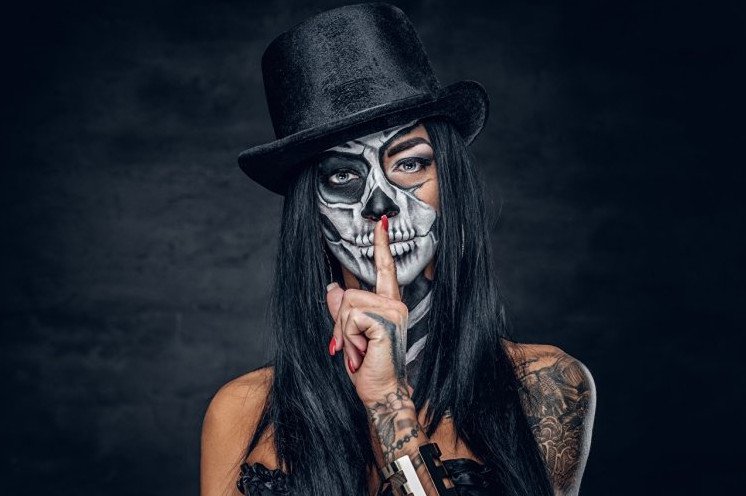 Девушка в маске черепа.