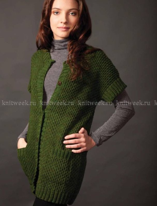 Жилет дамский вязаный без пуговиц.