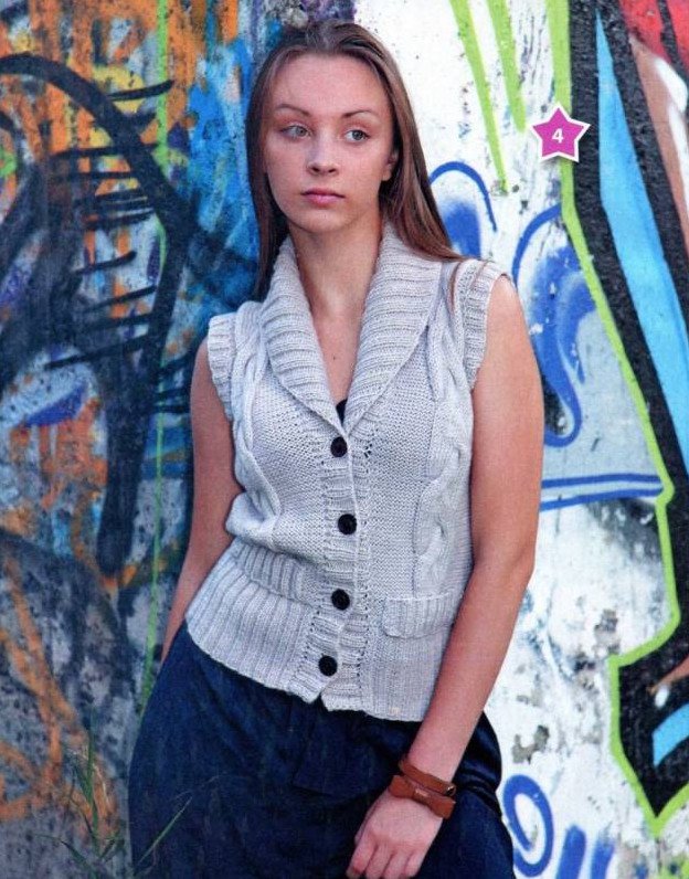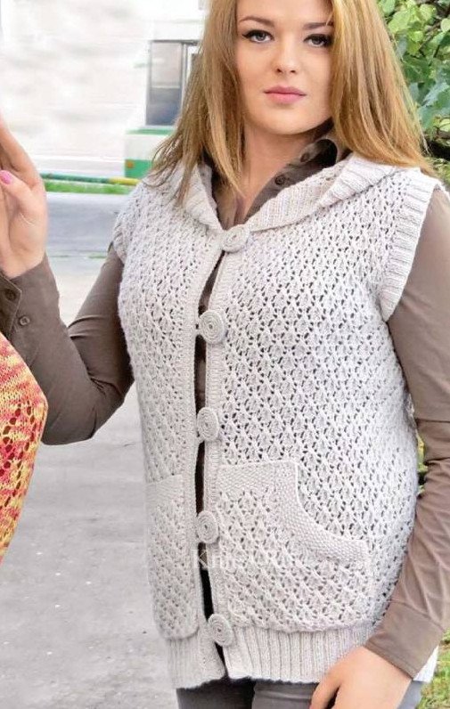 Прекрасный жилет спицами для красивых женщин.