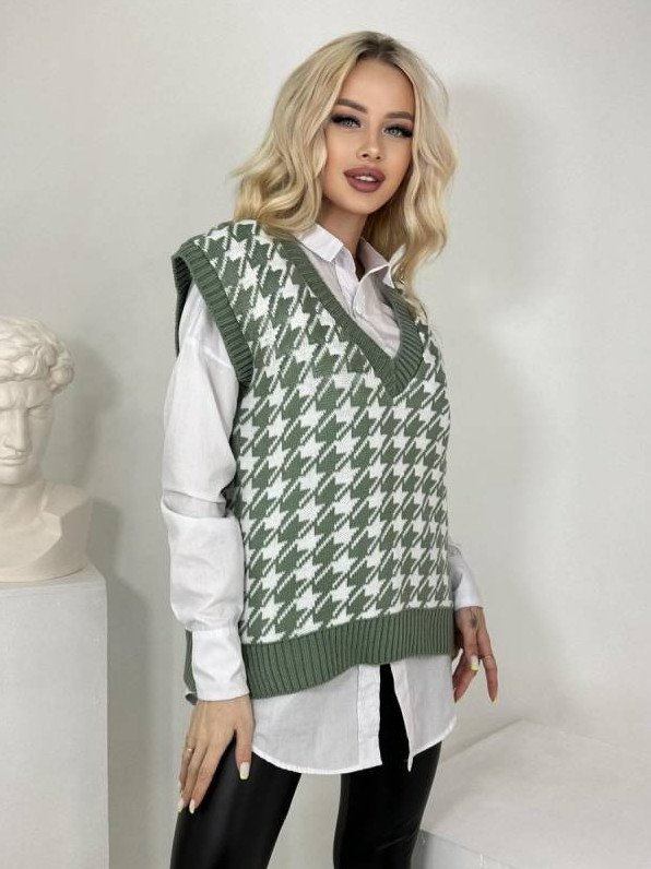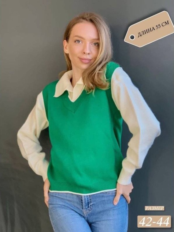 Зеленоватый вязаный жилет.