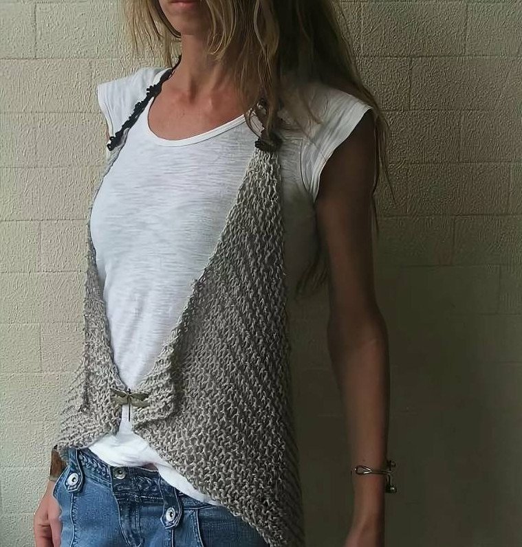 Асимметричная вязаная жилетка.