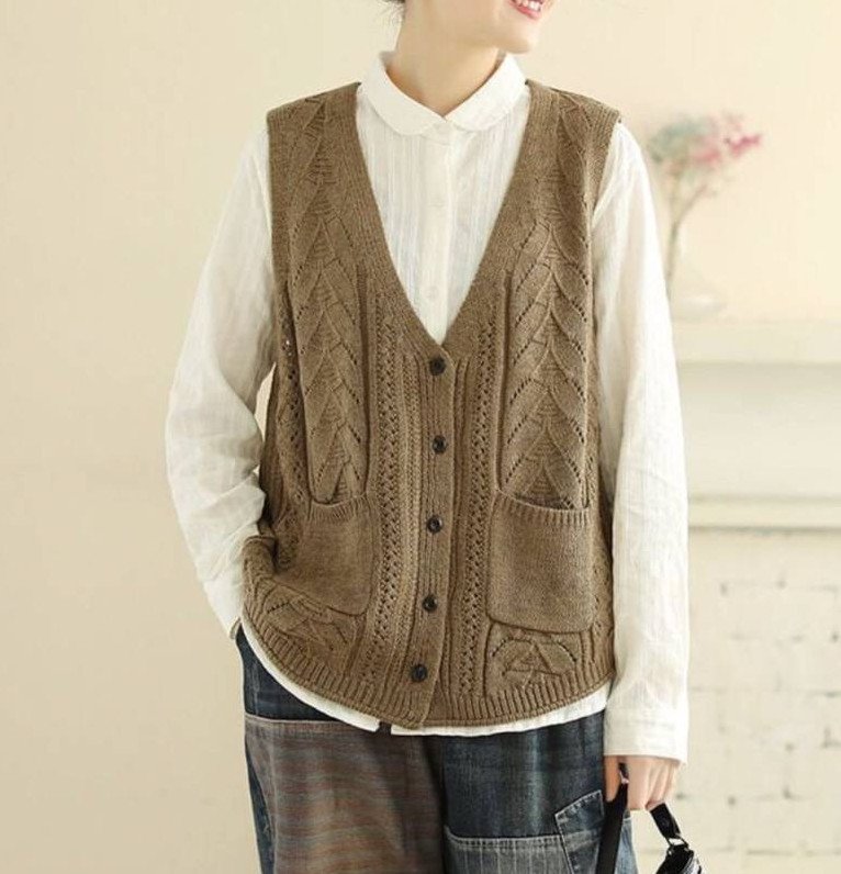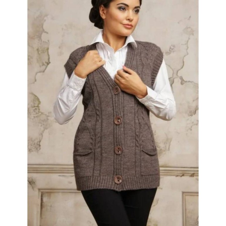 Элегантные вязаные жилеты для красивых женщин.