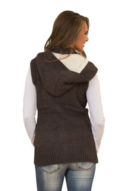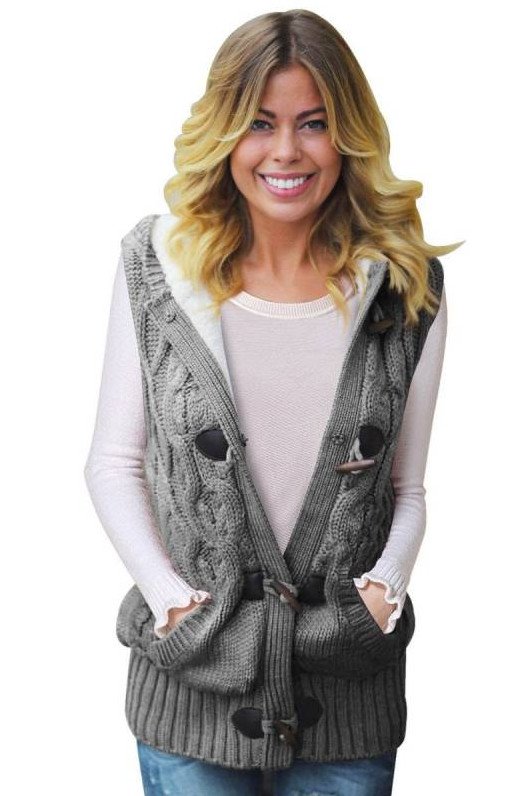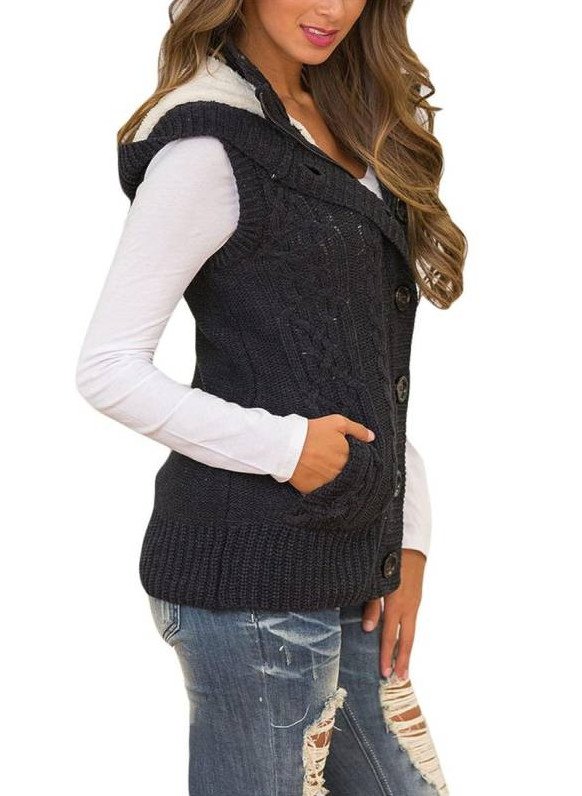 Жилет с вязаными кармашками дамский с капюшоном.
