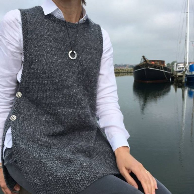 Темный вязаный жилет.