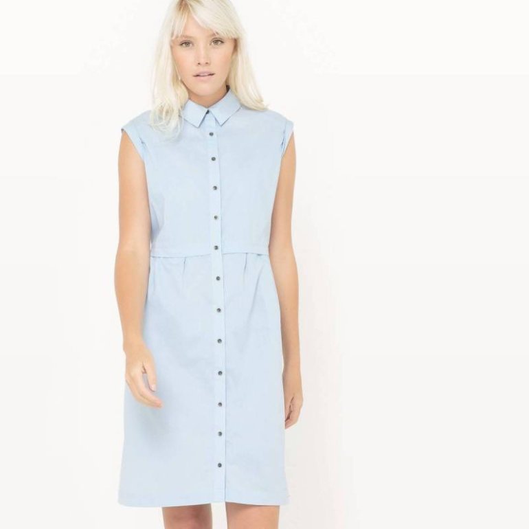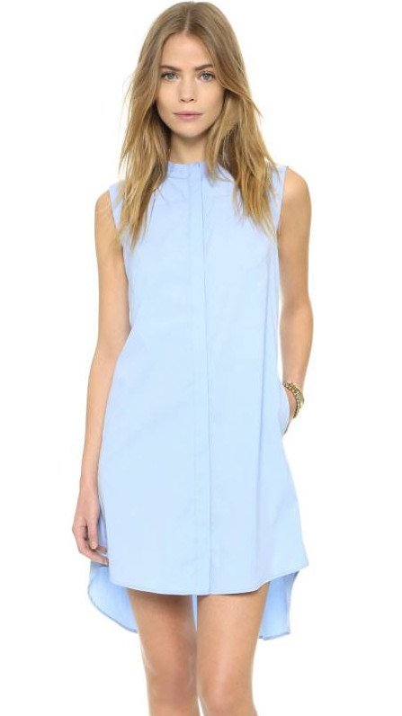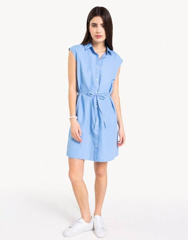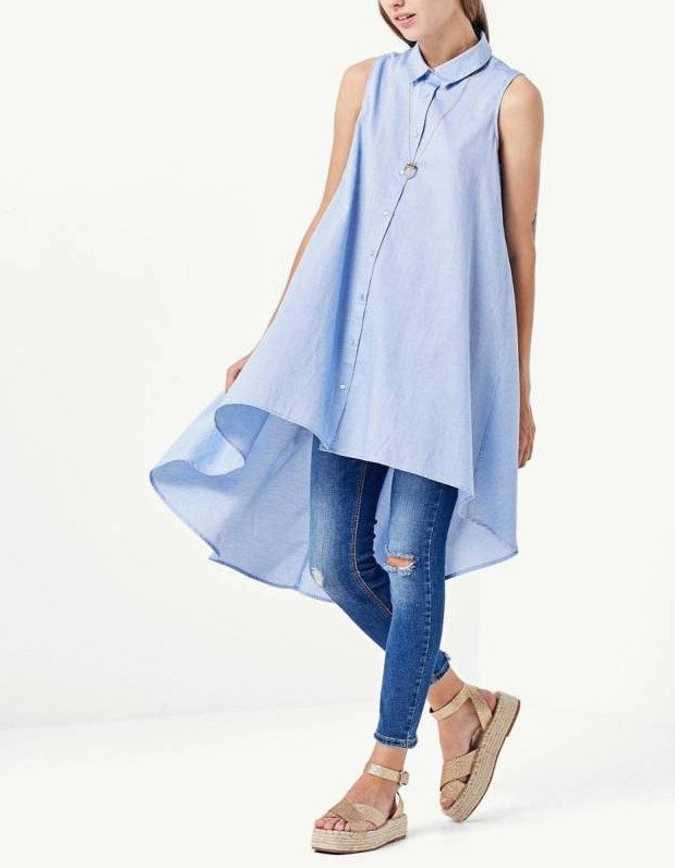 Платье рубаха без рукавов голубое.