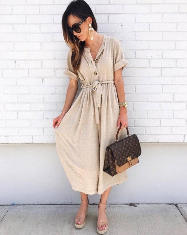 Бежевое летнее платье.
