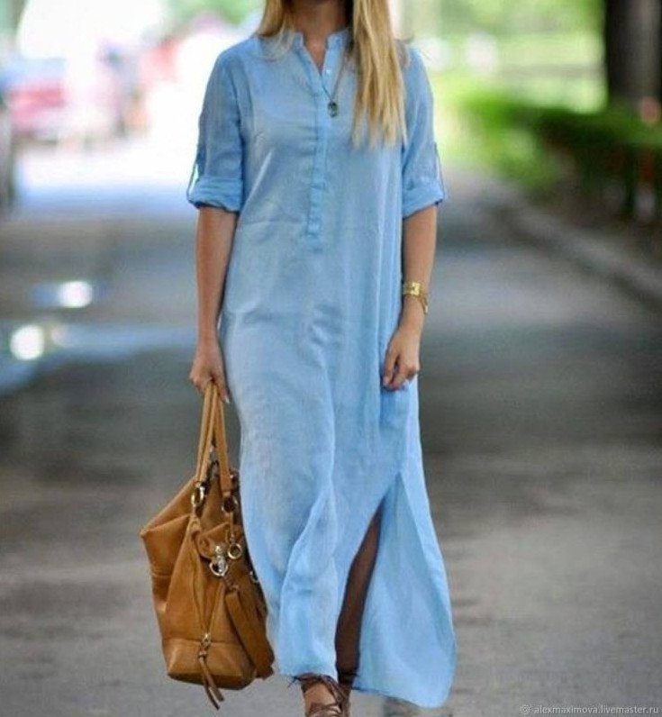 Платье макси рубашечного покроя.