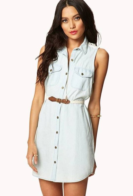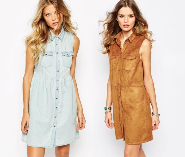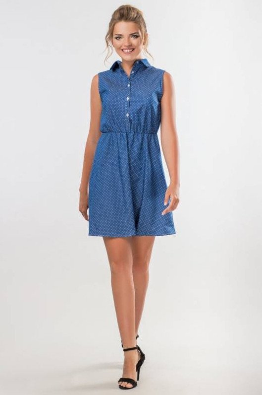 Платье джинсовое короткое без рукавов.