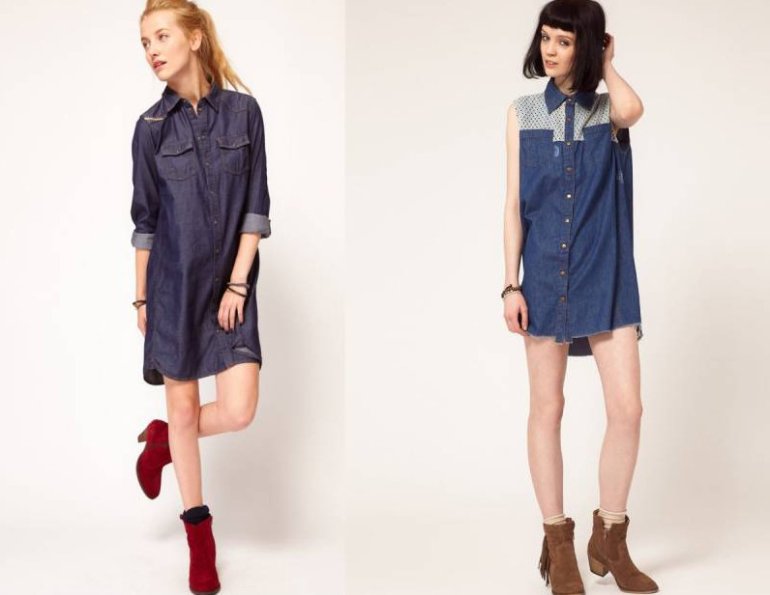 Длинноватое джинсовое платье.