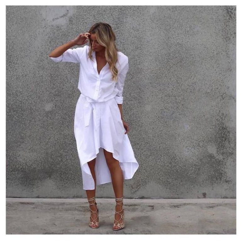 Белоснежное платье рубаха.