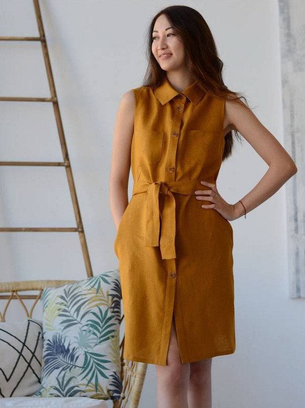 Платье-рубашка дамский без рукавов.