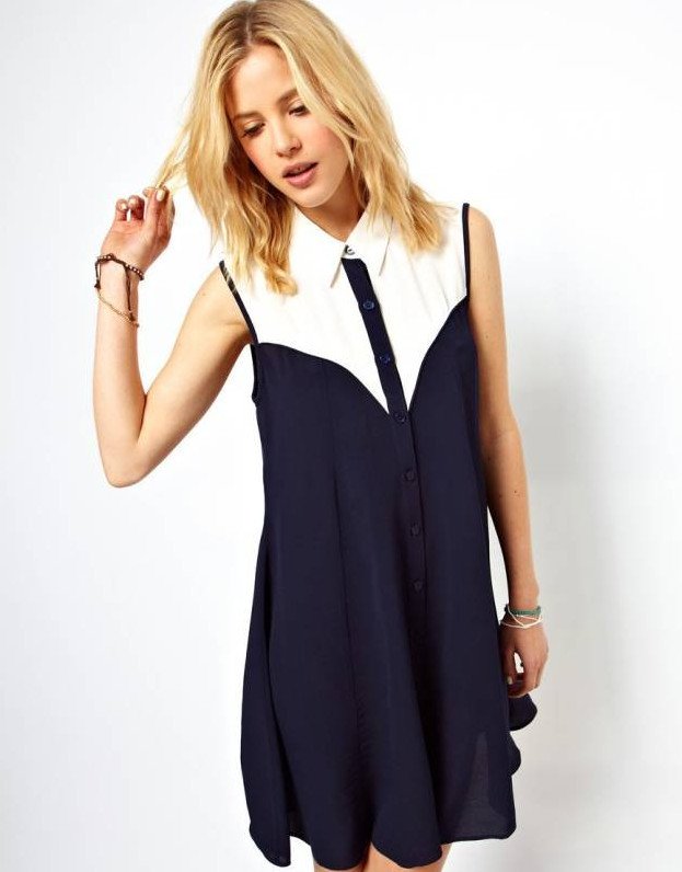Платье без рукавов с воротником.