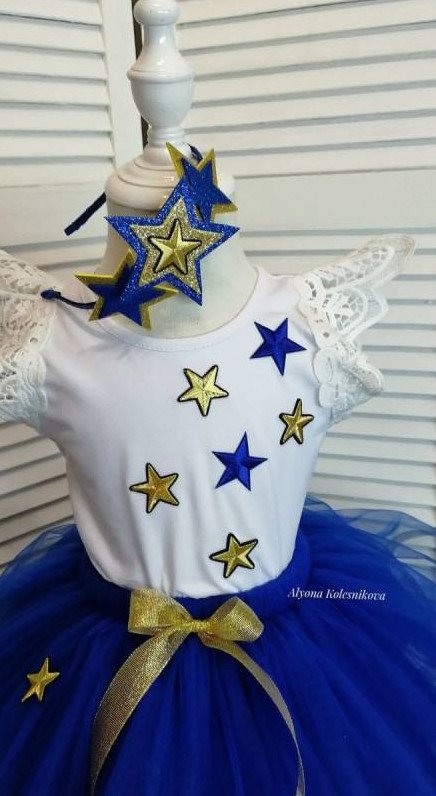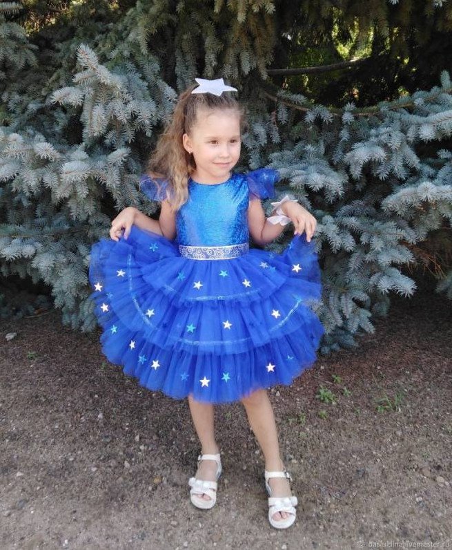 Голубое платье со звездочками.