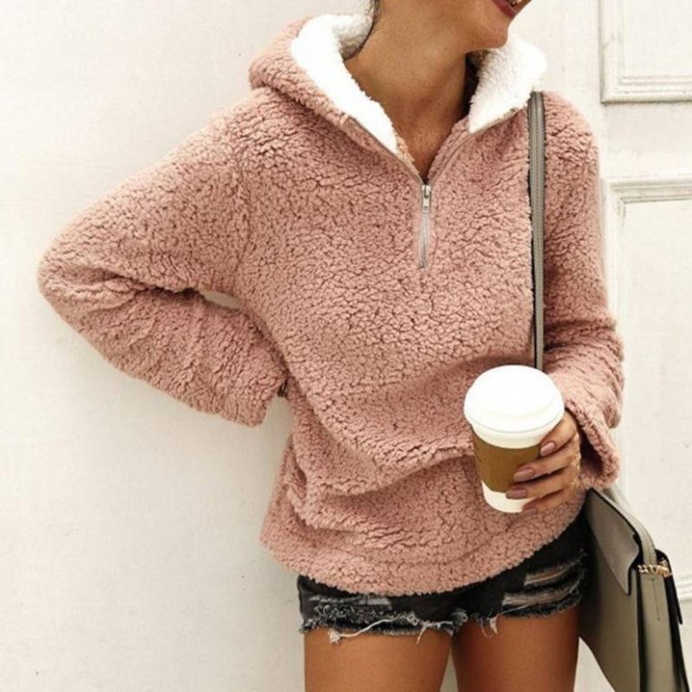 Джемпер шерпа дамский с капюшоном.