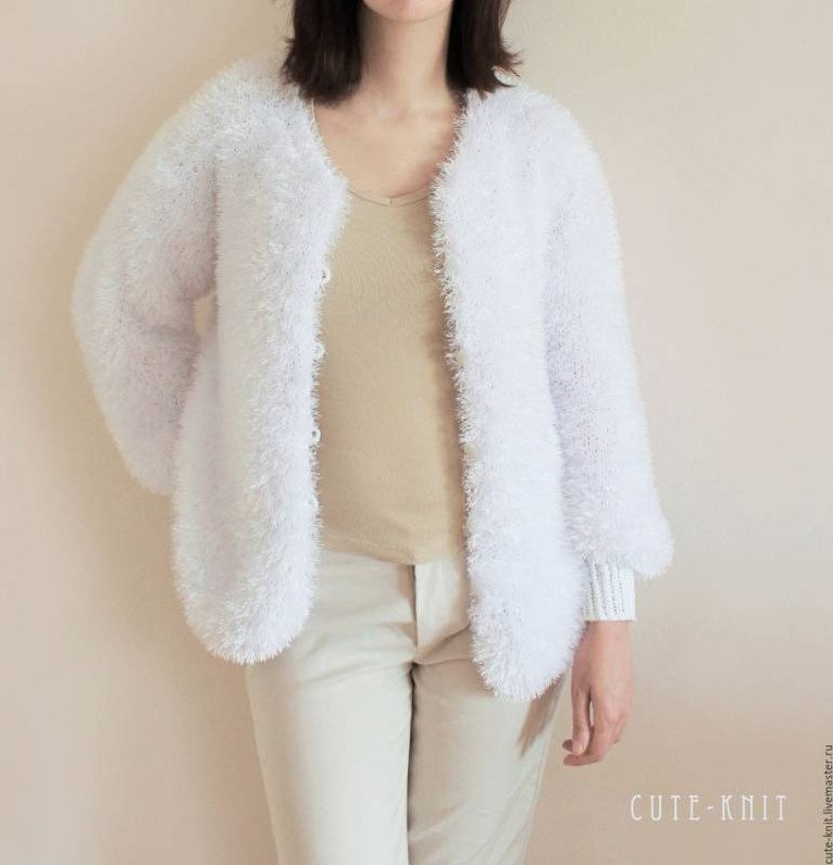 Кардиган дамский из лохматой пряжи.