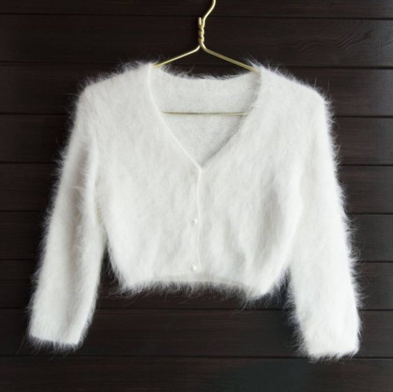 Белоснежная лохматая кофта.