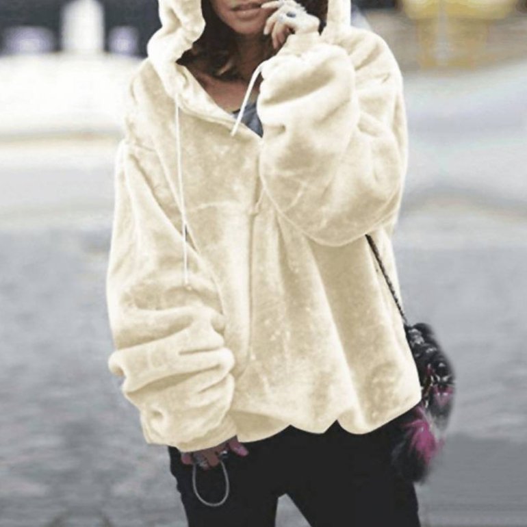Лохматая кофта с капюшоном.