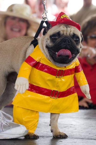 Мопс в костюме.