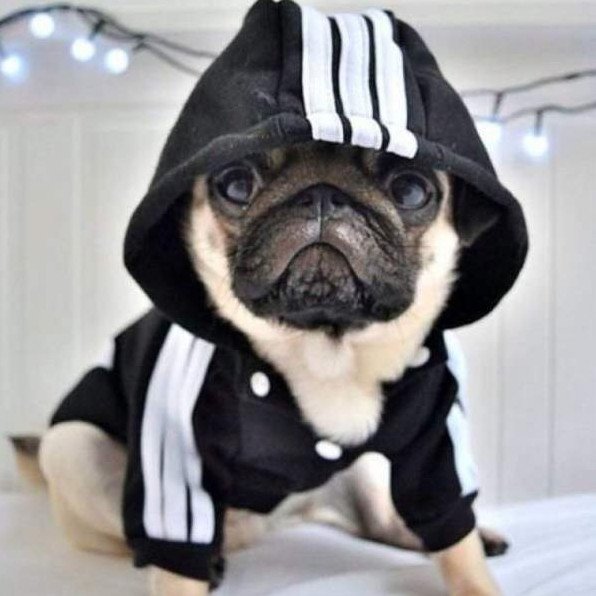 Забавные мопсы в одежке.