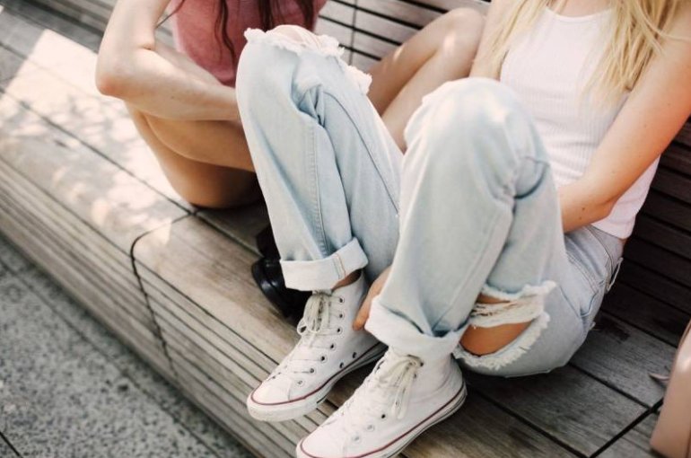 Девушки в джинсах и кедах.