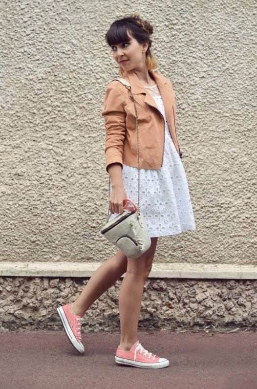 Розовое платье с кедами.
