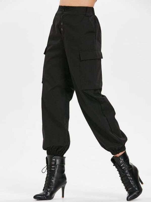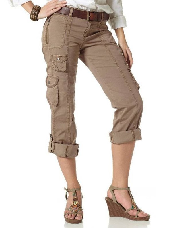 Дамские штаны карго с накладными кармашками.