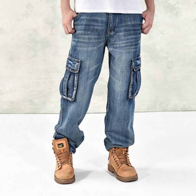 Джинсы карго мужские мешковатые.