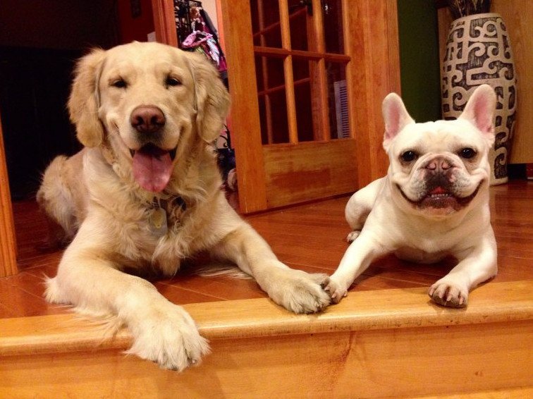Две собаки улыбаются.