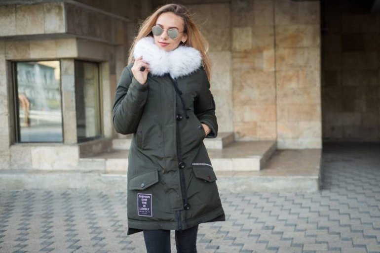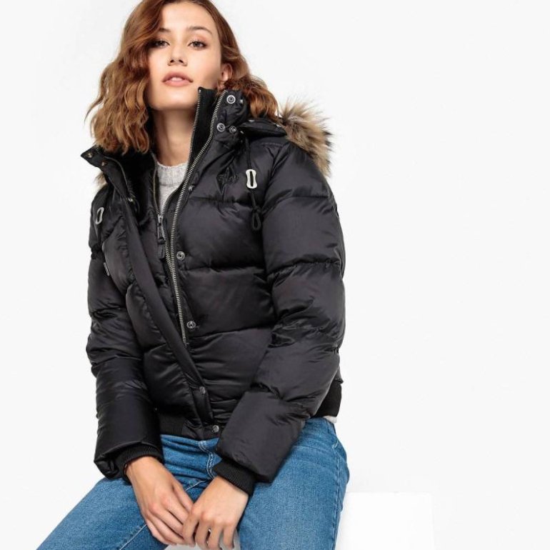 Куртка с меховым капюшоном женская.