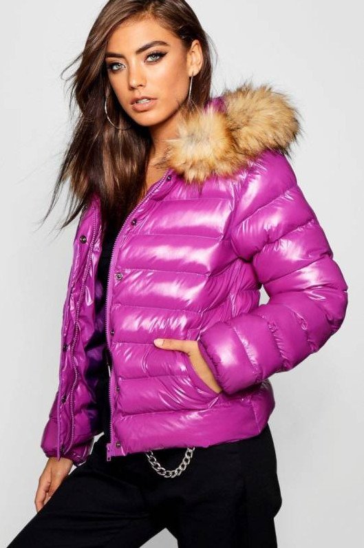 Vinyl Puffer Jacket fur Hood.