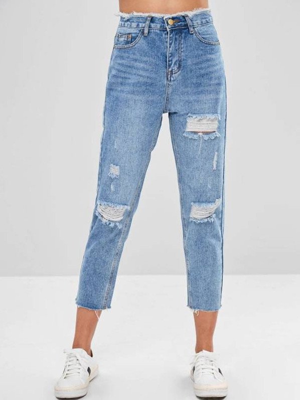Голубые джинсы дамские с дырками.