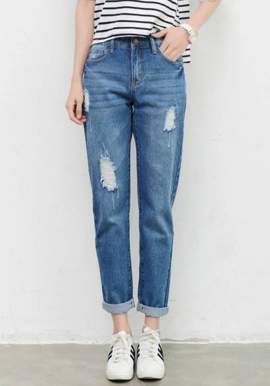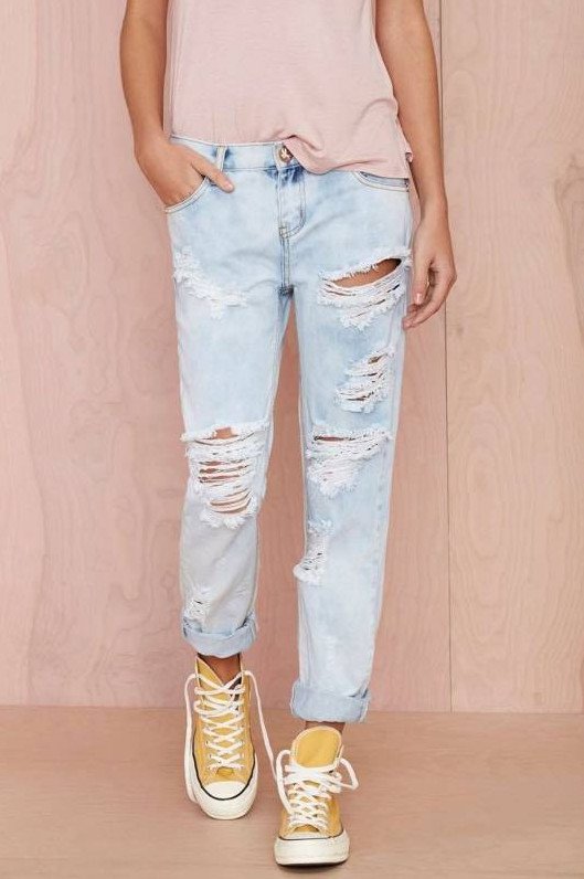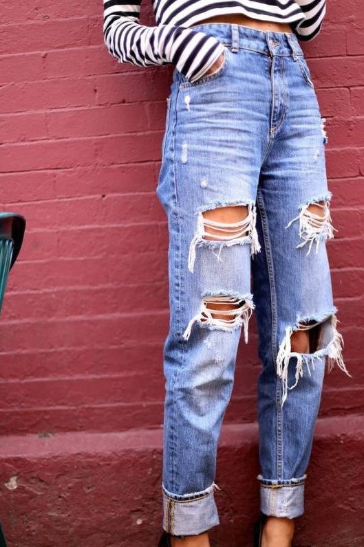 Джинсы с дырками и потертостями.