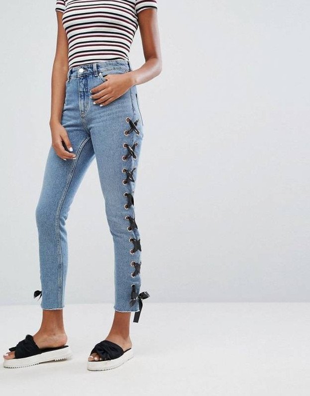 Джинсы с люверсами дамские.