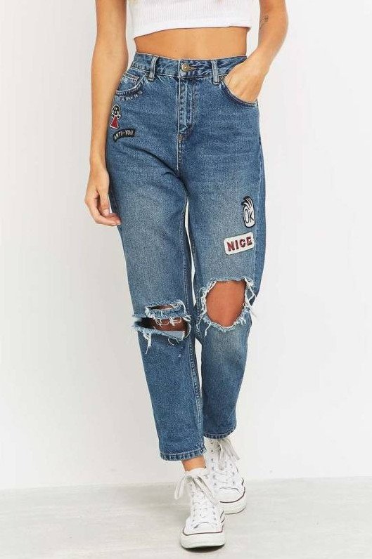 Джинсы мом рваные.