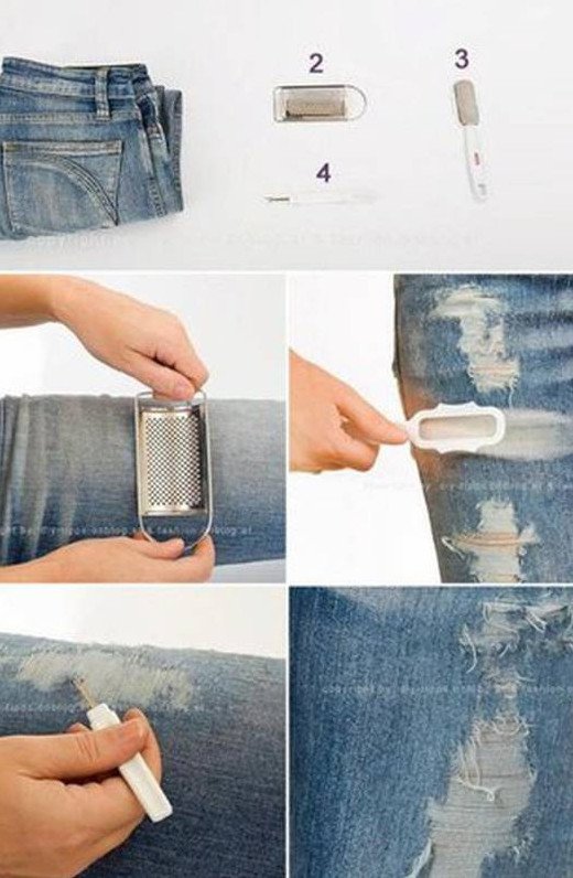 Потертости на джинсах своими.