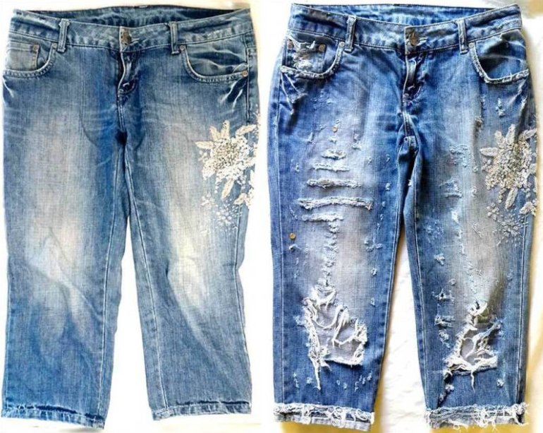 Декорируем джинсовые бриджи.