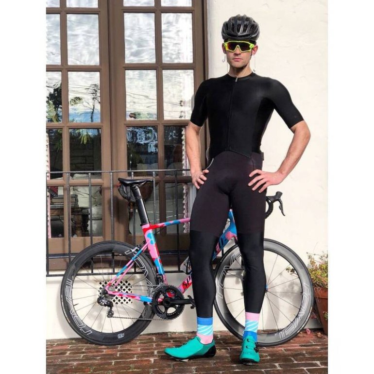 Парень в леггинсах на велике.