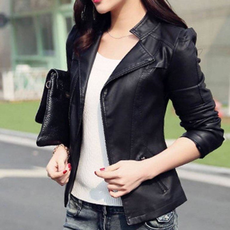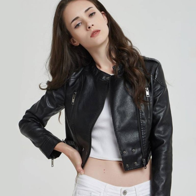 Маленькая кожаная куртка женская.