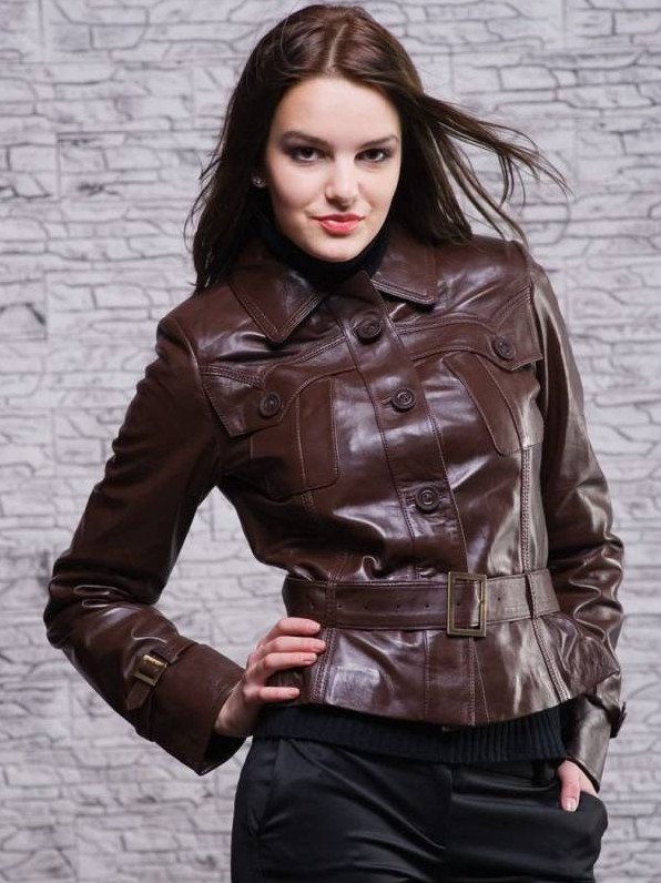 Кожаная куртка с ремешком женская.