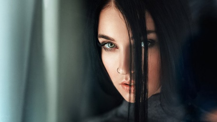 Красивая девушка с темными глазами в мгле.
