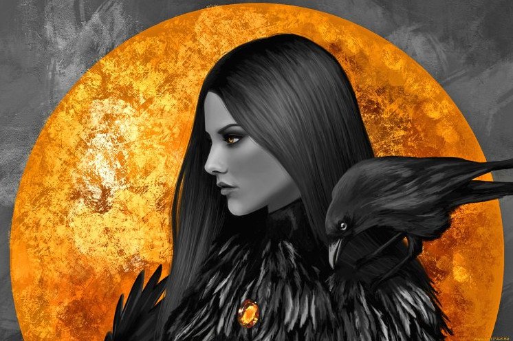 Красивая девушка с вороном.