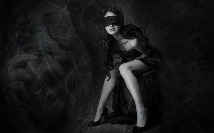 Красивая девушка сповязко на очах.