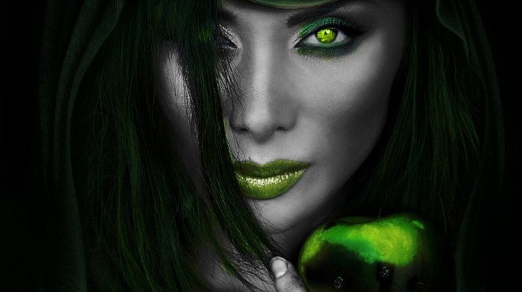 Ведьма с зелеными волосами.