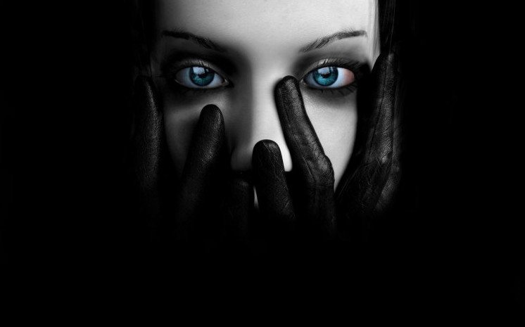 Жуткие глаза на черном фоне.