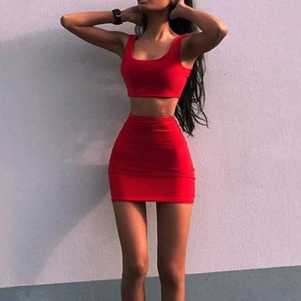 Эротика с брюнеткой в Красном прекрасное платье со спины.