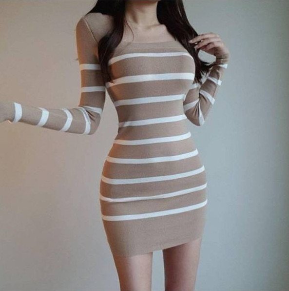 Красивая девушка в обтягивающем прекрасное платье без лица.