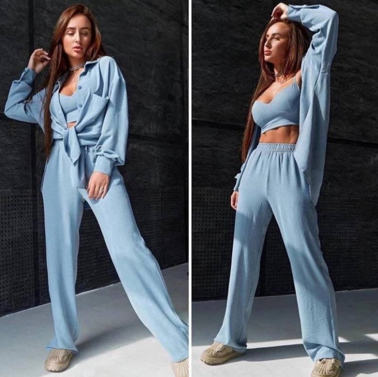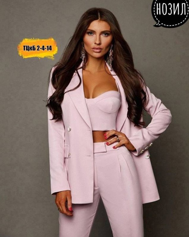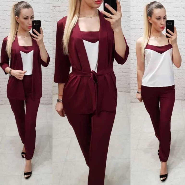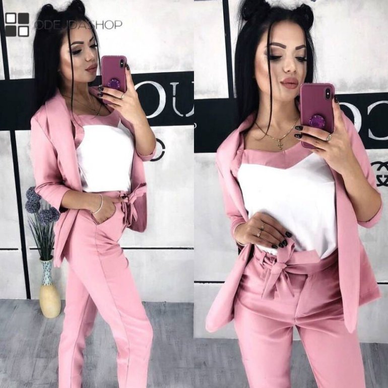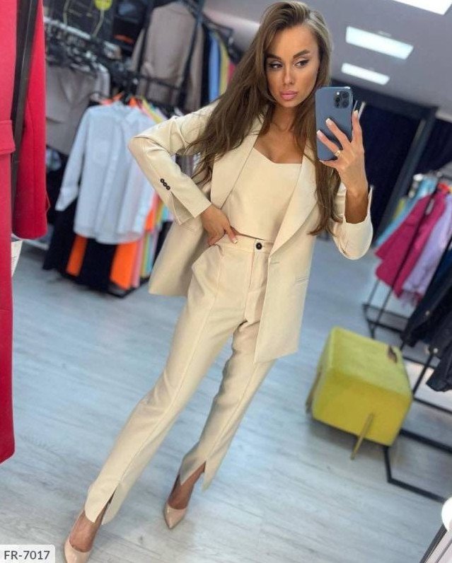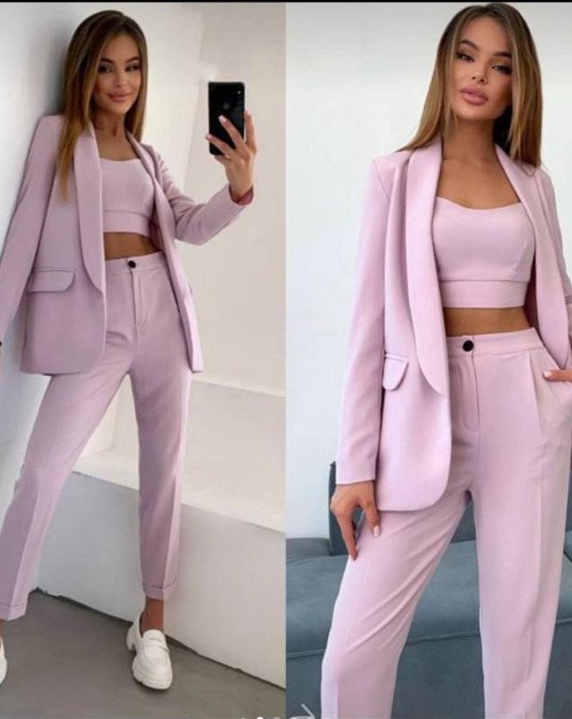 Костюмчик тройка дамский с топом и штанами и пиджаком.