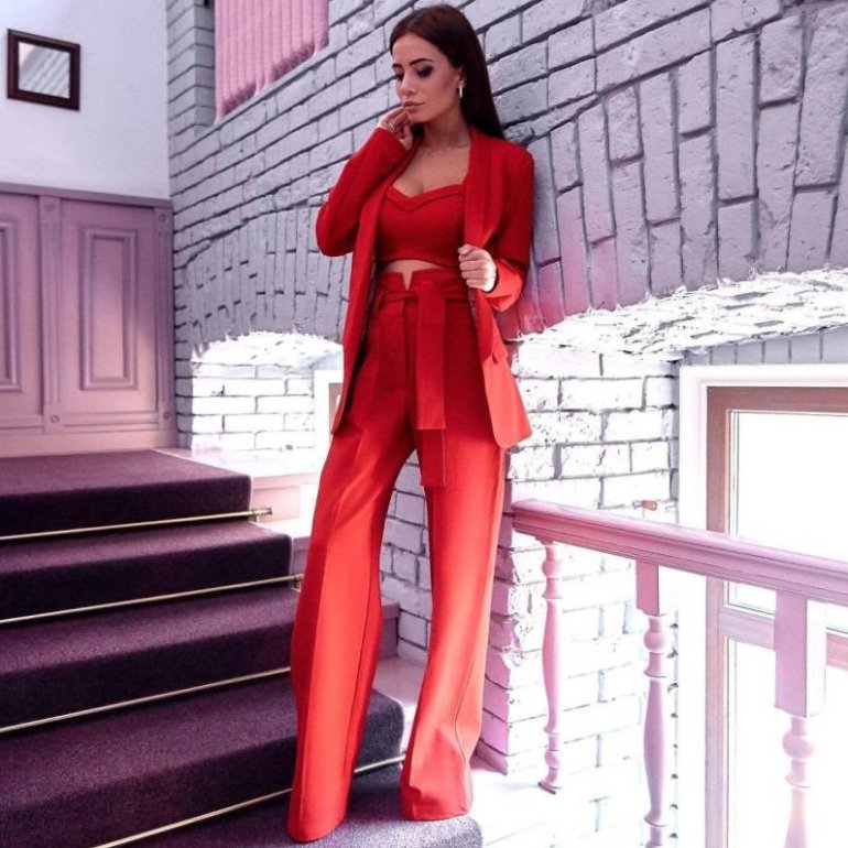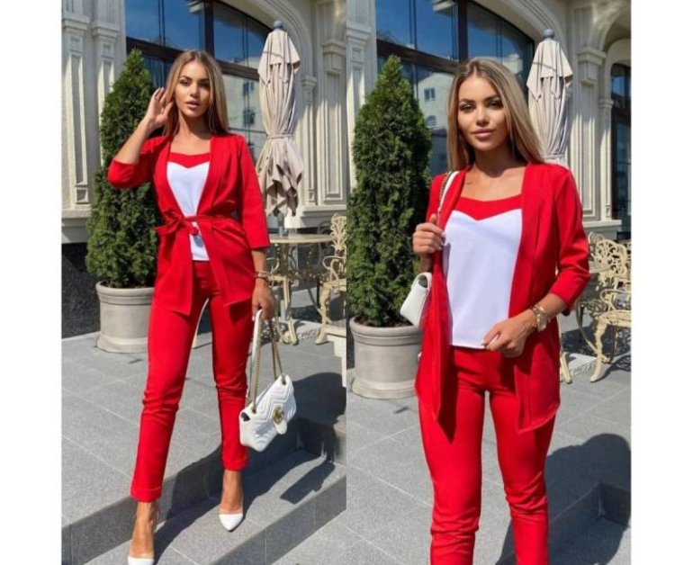 Очень красный костюмчик тройка дамский.