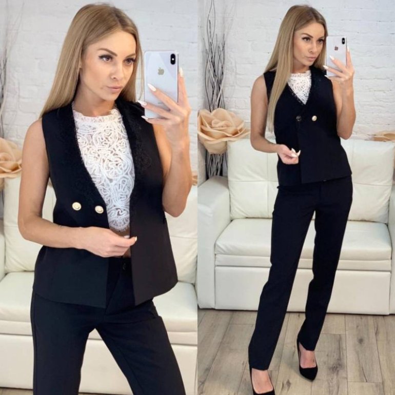 Брючный костюмчик тройка дамский с топом.